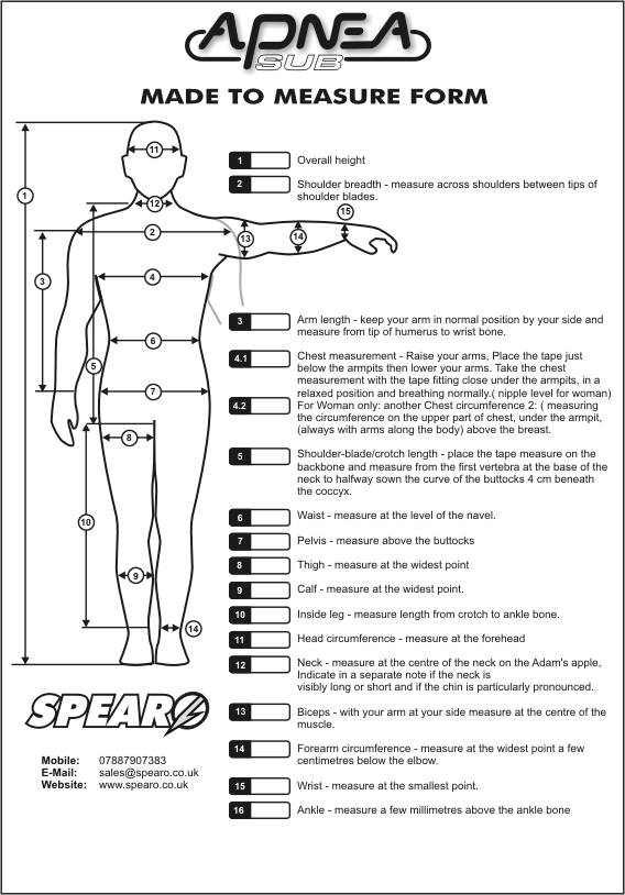 The Thor 7mm Suit for winter spearfishing. Nylon Outer Loading Pad want other options? build you own suit Standard size £180, buy one now Made to Measure £200 buy one now Download Made to Measure Form as Adobe PDF (353kb) or Printable Gif image (81kb) The Competitor Specifically designed high performance suit for freediving competition 3mm Heiwa neoprene Smoothskin outer Superstretch nylon/lycra lining want other options? build you own suit Standard size £170, buy one now Made to Measure £190 buy one now Download Made to Measure Form as Adobe PDF (353kb) or Printable Gif image (81kb) Apneasub Economy suit Ideal first suit want other options? build you own suit 5mm nylon / cell or double nylon Standard size £120, buy one now Made to Measure £140 buy one now Options Neoprene 3mm - Double lined, smoothskin/nylon, nylon/cell, or smoothskin/cell = £140 5mm - Double lined, smoothskin/nylon, nylon/cell, or smoothskin/cell = £150 6mm - Double lined, smoothskin/nylon, nylon/cell, or smoothskin/cell =£160 7mm - Double lined, smoothskin/nylon, nylon/cell, or smoothskin/cell =£170 Extras Made to measure +£20 Gold coating (inside) +£30 Camo (outside) +£30 Lycra (outside) +£30 Superstretch (inside) +£30 Loading pad +£10 Long john trouser+£15 |