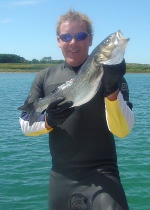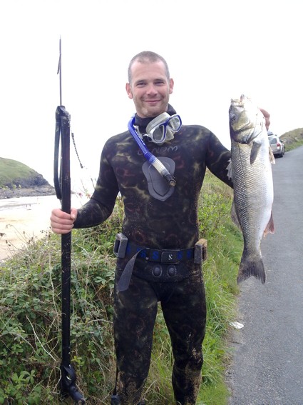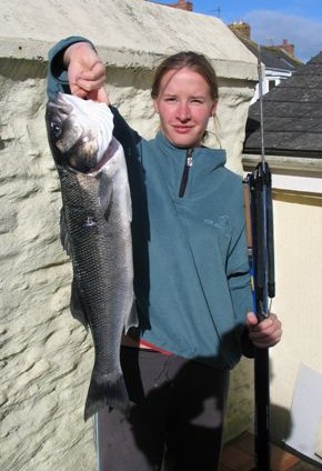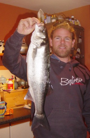 Thomasson with 8.5lb bass, North Cornwall |